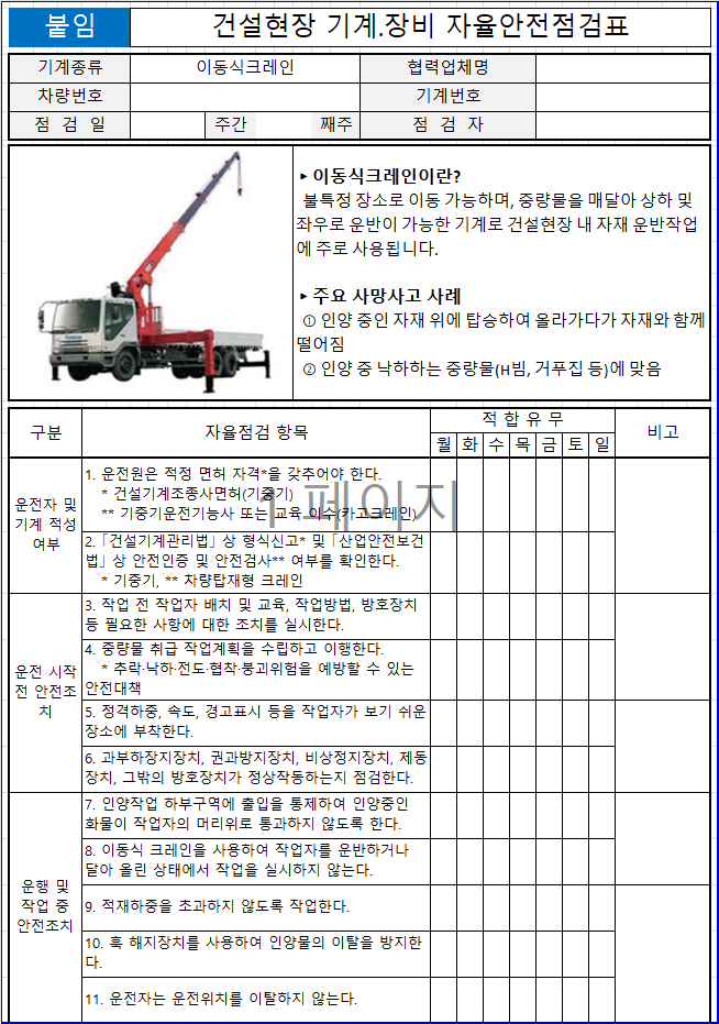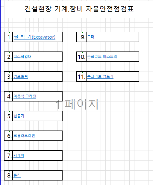 건설기계장비자율안전점검표-11종엑셀