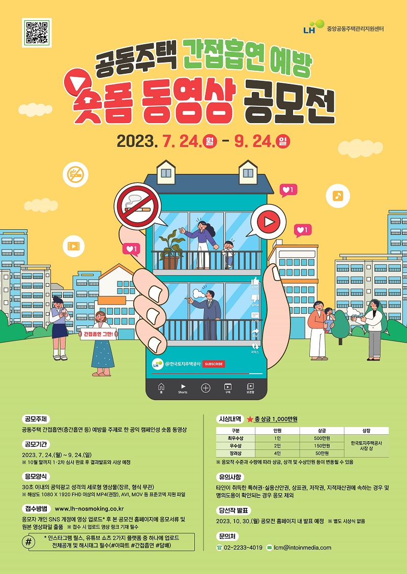 응모 주제: 공동주택 간접흡연(층간흡연 등) 예방을 주제로 한 공익 캠페인성 숏폼 동영상