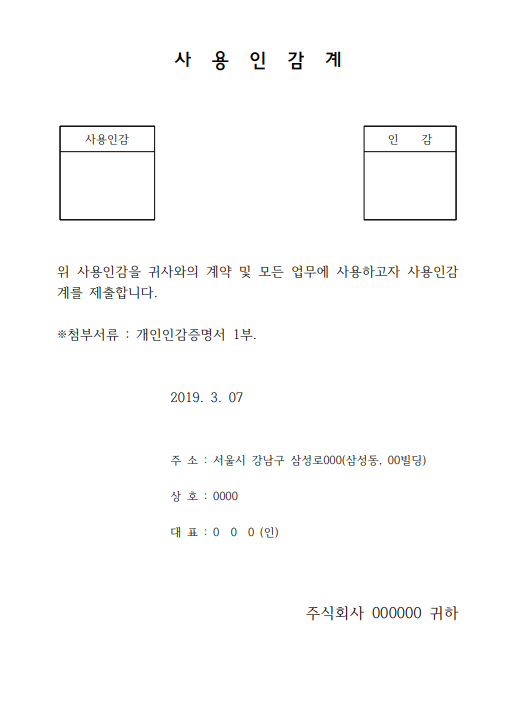 예시: 계약서에 개인 인감을 찍기 어렵거나 부담스러운 경우, 사용인감으로 대체하여 계약을 체결할 수 있습니다.