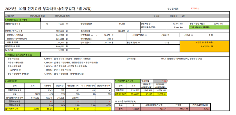 전기요금은 한전에서 건물에 1장 고지서를 발부하고
