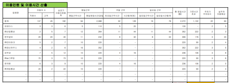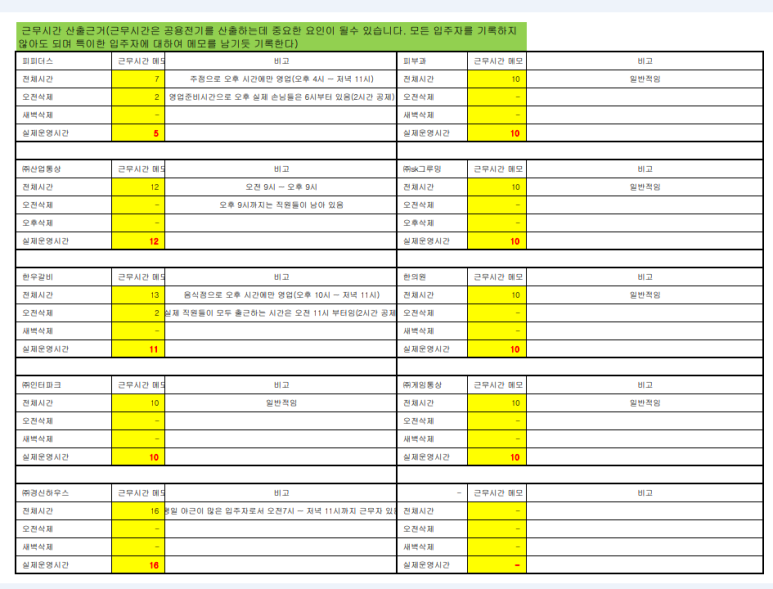 4.공용요금 분배 조건에 맞는 자료 입력하기 근무시간, 주차기이용대수, 상주인원 등