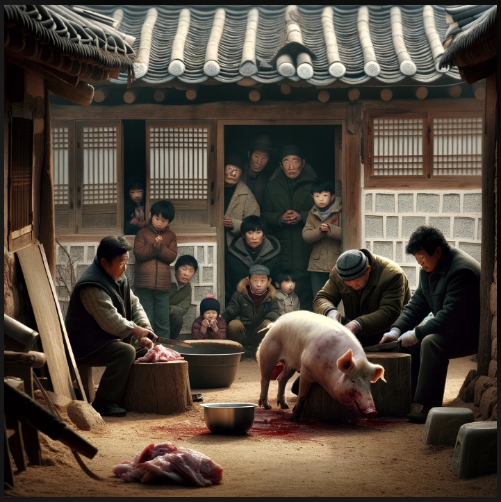 동내 어른들이 준비해 놓은 돼지를 잡았었지요