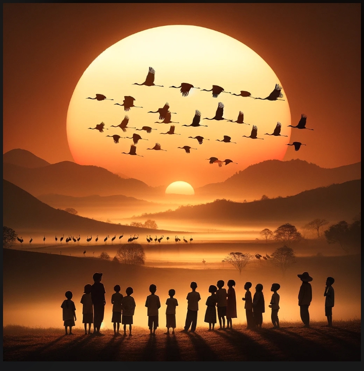 어린시절 들판에 나와 밝은 해를 맞이하는 동심의 세계