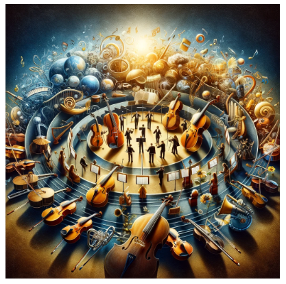 이미지 설명 : 위의 이미지는 "인생이라는 교향곡에서, 교육에 대한 끊임없는 추구가 기회의 리듬과 어우러지는 멜로디가 되게 하라."라는 명언의 정신을 시각적으로 표현하고 있습니다. 다양한 악기가 조화롭게 연주하는 교향악단 장면은 교육의 다양한 분야를 대표하며, 이 악단은 인생에서의 지속적인 학습의 조화를 상징합니다. 각 악기는 지식과 기회의 다른 측면을 나타내며, 이미지는 단결, 교육의 아름다움, 그리고 인생의 기회의 교향곡을 전달합니다.