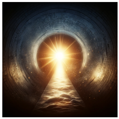 이미지 설명 : 위의 이미지는 "학습에 대한 열정을 어두운 터널을 관통하는 빛으로 삼아라. 지식을 추구하는 과정에서 모든 도전은 새로운 새벽으로의 문이다."라는 명언의 정신을 시각적으로 표현하고 있습니다. 터널 끝에서 밝게 빛나는 빛은 학습에 대한 열정을 상징하며, 어둠 속에서도 지식의 힘이 밝게 빛나 새로운 새벽으로의 문을 엽니다. 이 이미지는 희망, 도전 극복, 그리고 지식 추구가 인생의 어려움 속에서 등대 역할을 하는 것을 전달합니다.