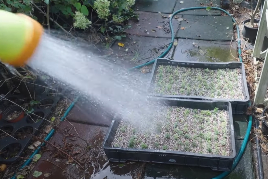 물을 줄때는 삽목된 삽수가 빠져나오지 않도록 조심하여야 하는데 물이 고지지 않도록 여러번 자주 흠뻑 뿌려 줍니다.