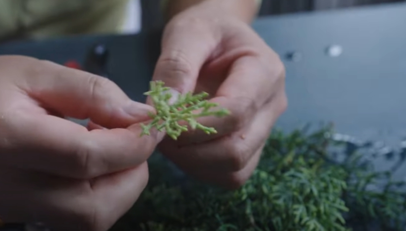 이렇게 모두 자른 작은 가지들은 삽목토에 꼽기 좋게 아랫부분의 작은 잎들은 가위로 잘라 줍니다.