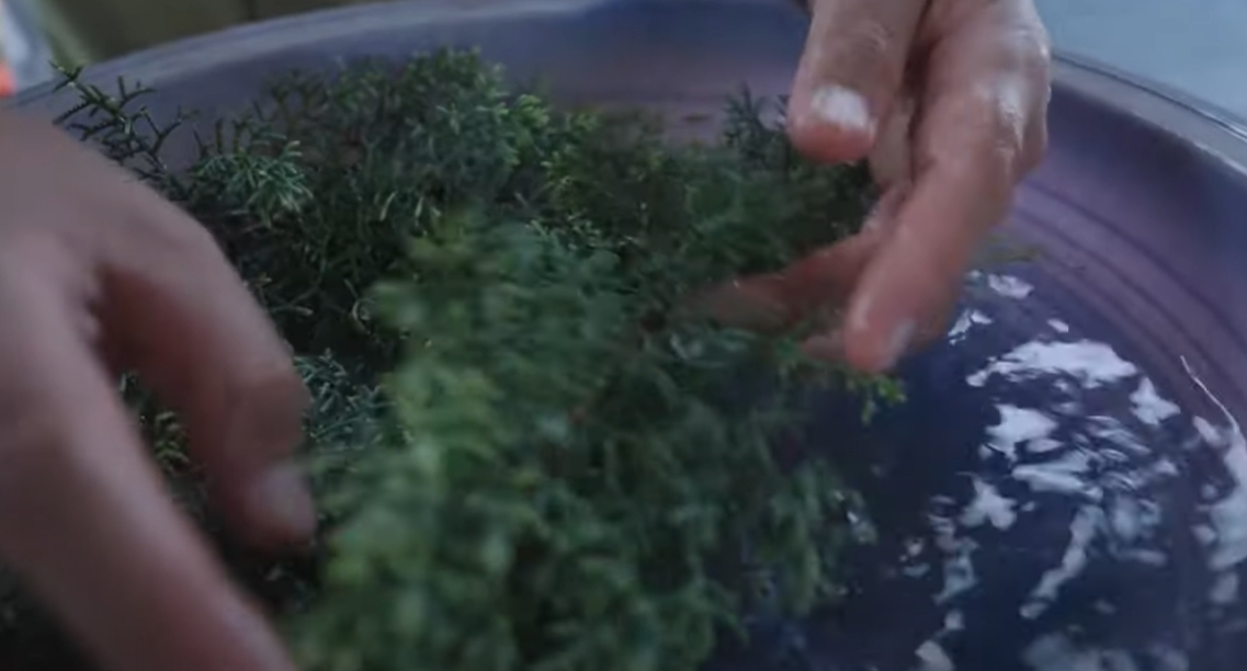 채취 된 가지는 이렇게 깨끗한 물에 씻어 줍니다.