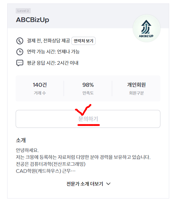 2.크몽에서는 "문의하기"에서 직접 질의 하시면 됩니다.