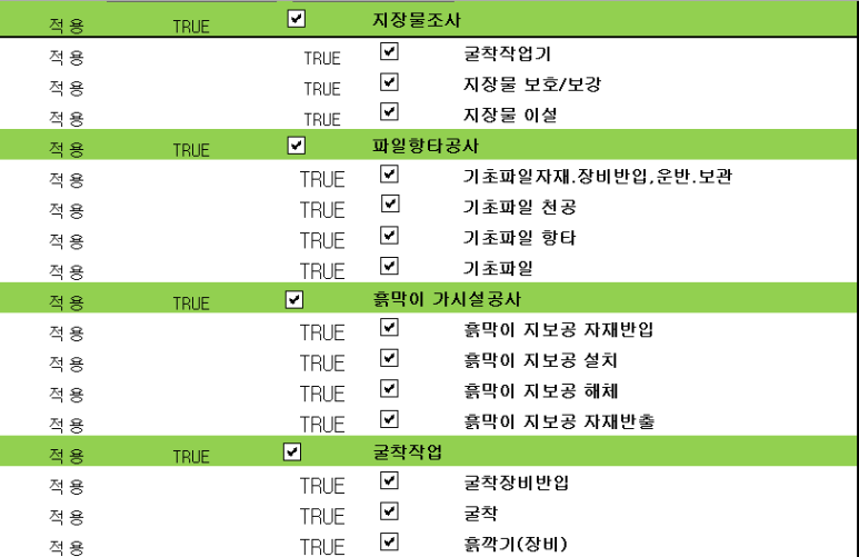 물론 기 구축해놓은 엑셀은 임의대로 변형도 가능하기 때문에 현장의 현실에 맞추어 사용할 수 도 있다.