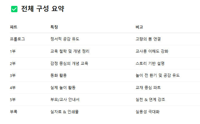그리고 마지막 부록에는 활동지, 계획안, 차트, 통신문 등이 포함되어 있어