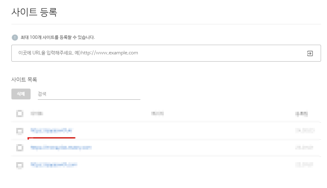 이렇게 확인이 되면 다시 아래 화면이 나오고 목록에 등록한 사이트가 나오는 것을 확인 할 수 있습니다.