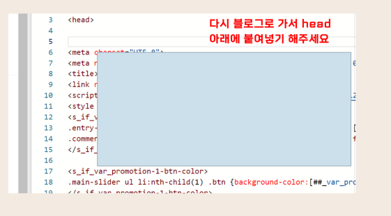 지금은 티스토리의 경우이기 때문에 위와 같이 HTML 테그 편집을 하겠습니다.