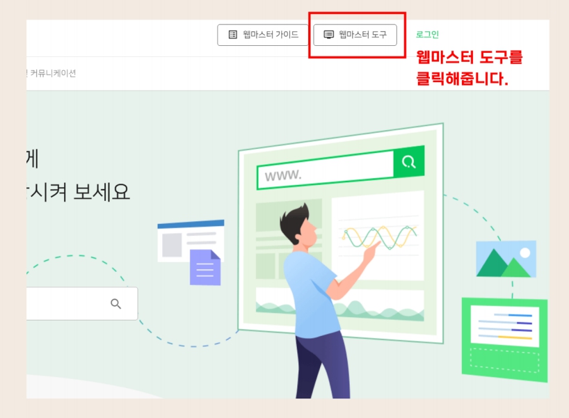 위 의 웹마스트도구 부분을 선택하세요.