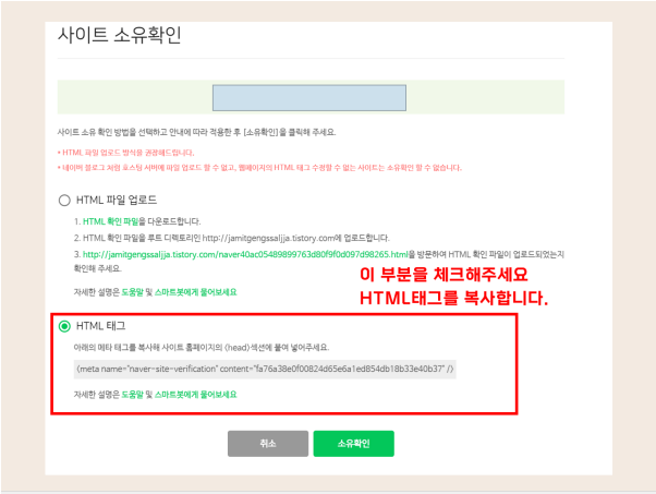 사이트 소유를 확인하기 위하여는 다음의 두 가지 방식이 있습니다.
