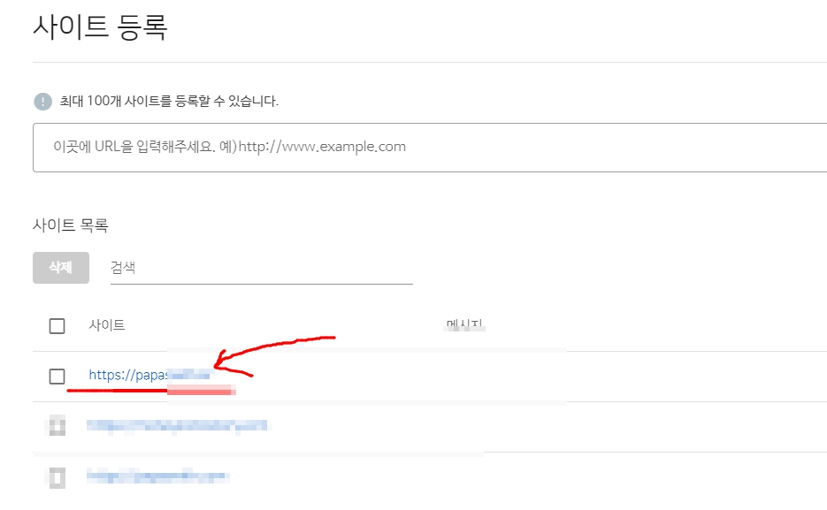 이렇게 확인이 되면 다시 아래 화면이 나오고 목록에 등록한 사이트가 나오는 것을 확인 할 수 있습니다.
