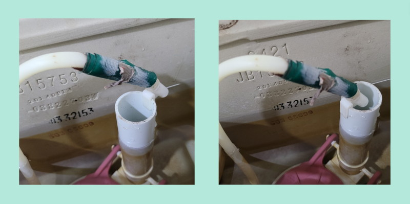 변기의 물 공급 호스는 오버플로우 파이프 내부에 설치(오른쪽 이미지)되어 있어야 합니다. 물 공급 호스가 잘못 설치되어 파이프 외부에 위치하면, 변기 내 물이 충분히 채워지지 않고, 물 내림이 약해질 수 있습니다. 적절한 설치는 물 공급이 원활하게 이루어지도록 하여 변기 성능을 최적화하는 데 필수적입니다.