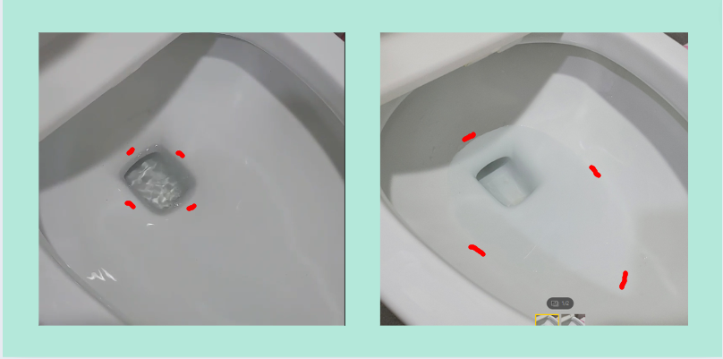 우측은 물이 어느정도 채워지게 되어 냄새를 방지하고 휴지 등이 물에 잘 녹아서 막힘현상을 줄여 줍니다.